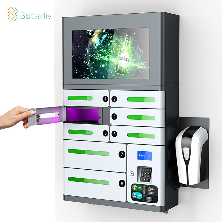 OEM ODM 8湾の携帯電話の充満ロッカーは紫外線滅菌装置のアンドロイドLCDが付いている充電器のロッカーの可動装置の充満キオスクに電話をかける